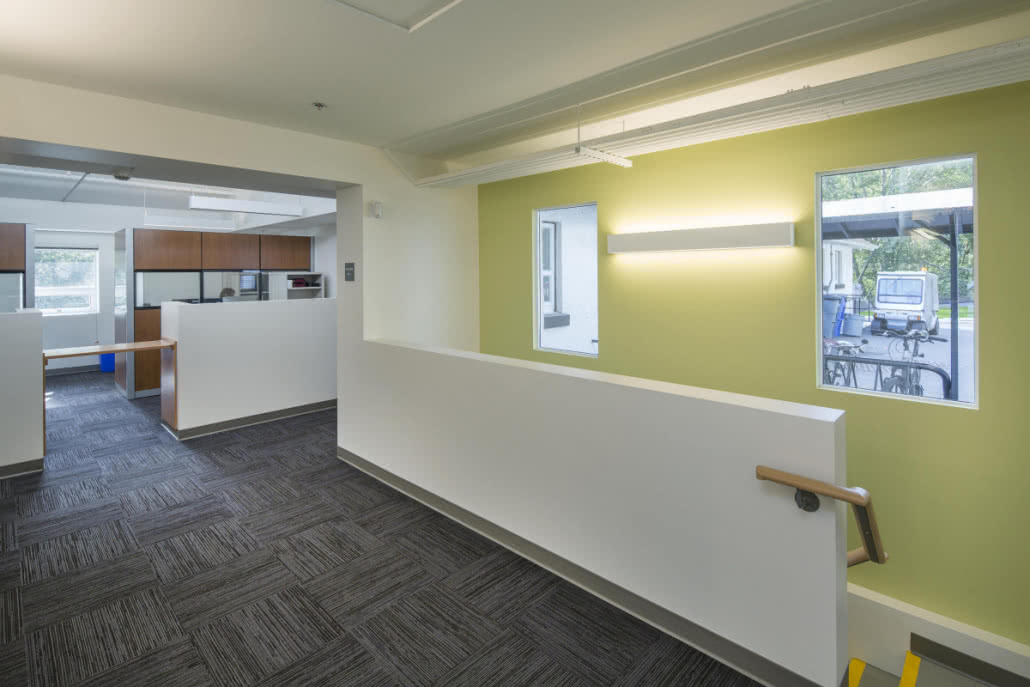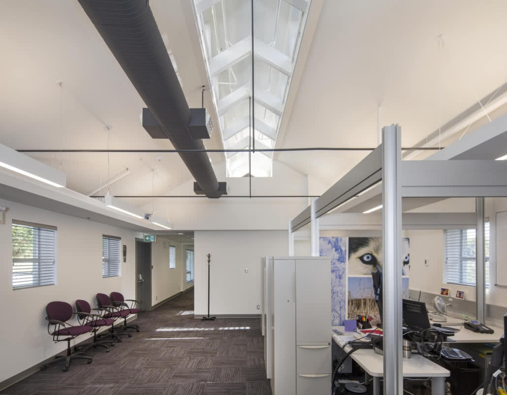 This project involved renovation and seismic upgrading to the existing Cedar Building at Royal Roads University to consolidate and accommodate approximately 32 IT staff. The renovated building now provides new open and enclosed offices, meeting areas and classroom space. The areas identified for renovation included seismic upgrades, electrical and mechanical upgrades including reconfiguration and updating of washrooms to current codes and reconfiguration of spaces to accommodate the functional programming. Victoria, BC, 2014