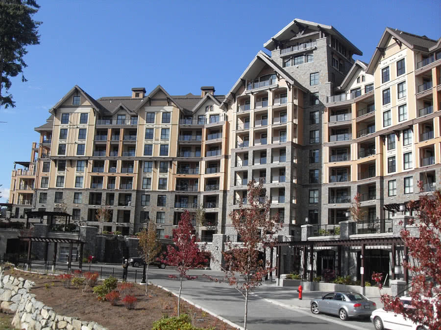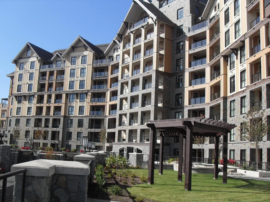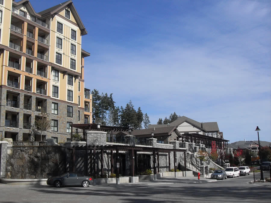 This concrete 182,000 square foot luxury high-rise is comprised of 159 condominium units and a 2 level 124,000 square foot parkade, multi-use amenity space, squash and tennis courts. Langford, BC, December 2008. Total project value $59,000,000.