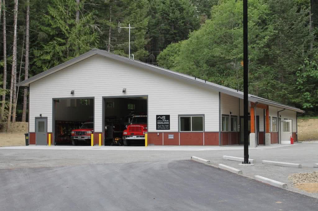 The District of Highlands East Fire Hall is a wood framed structure comprised of two garage bays for spaces for three fire trucks, a radio room, staff office and a training room. The fire hall is an emergency response facility and was constructed with post-disaster design methodologies. 2014/2015, Victoria, B.C