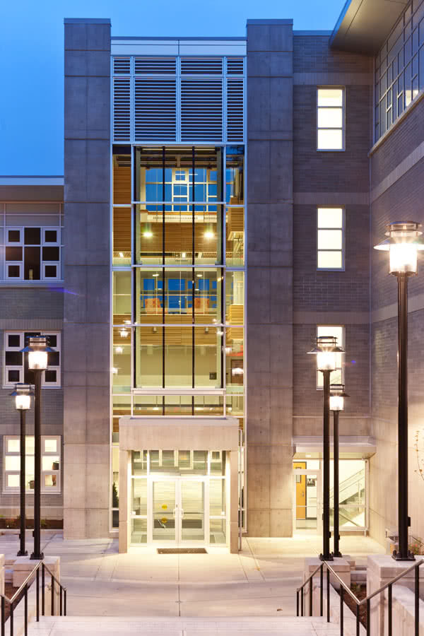 The Learning and Innovation Centre at Royal Roads University provides contemporary educational technology and learning facilities that will increase access and the capacity for the university’s enrolment in the expanding roster of academic programs. The four storey LEED Gold Certified building was designed to complement Hatley Castle and heritage of the Royal Roads property. Project value $15,250,000 Completed March 2011.