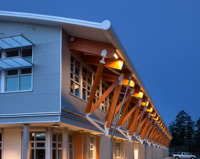 The Songhees Wellness Centre is 3 storey concrete, structural steel and glue laminated structure.